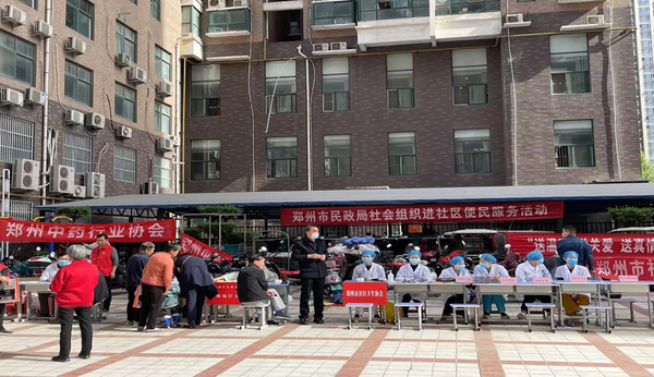 中药协会走进丰庆路安泰社区开展送医送药公益活动中药协会走进丰庆路安泰社区开展送医送药公益活动 4月14日上午,在郑州市民政局、社会组织服务中心带领下,郑州中药行业协会公益活动小组在李现杰会长安排下,张小林副会长精心组织下,走进金水区丰庆路街道安泰社区,为那里的居民群众送上了协会的一份爱心。这也是郑州市民政局、社会组织服务中心进社区便民服务常态化活动。